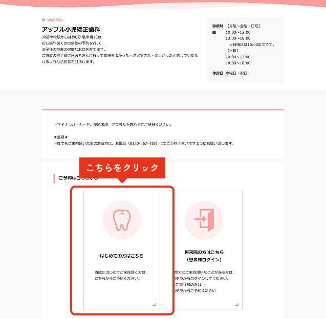 オンライン予約は「はじめての矯正相談の方専⽤」です。
